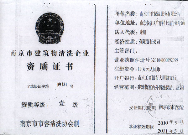 南京保潔公司注冊資金10萬元,是江蘇省家庭服務協(xié)會會員單位,江蘇省家政服務業(yè)分類執(zhí)行標準起草制定單位,先后被評為江蘇誠信服務先進單位、南京是家政服務定點培訓單位、南京市十佳建筑物清洗企業(yè)、南京市誠信示范單位、南京市鼓樓區(qū)三信三優(yōu)單位。董事長康朋是江蘇省家庭服務業(yè)協(xié)會副會長、江蘇省家政服務分類執(zhí)行標準主要起草人。
